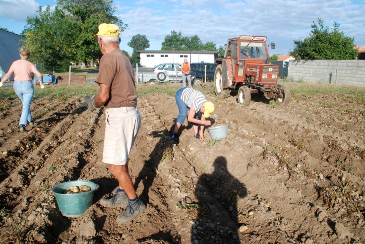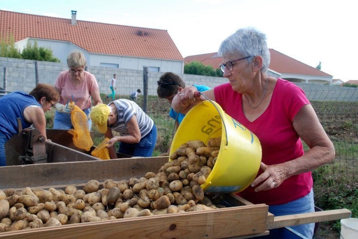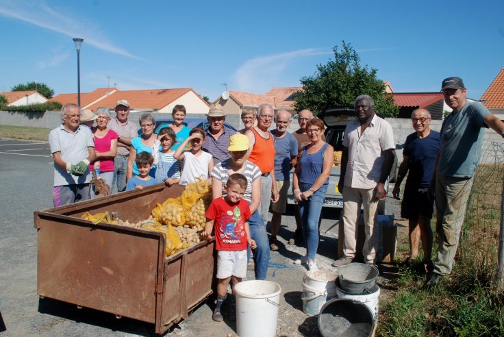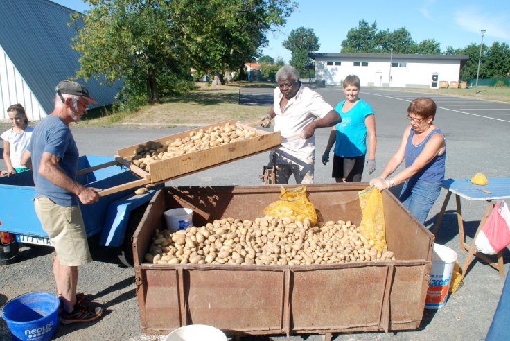 Comme chaque année en août, nous avons fait la récolte de pommes de terre qui seront vendues au profit de l’association. Faible récolte puisque seulement 800 kgs ont été récoltés. Ce sont des pommes de terre « Charlotte » cultivées au naturel.
