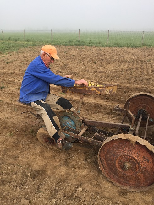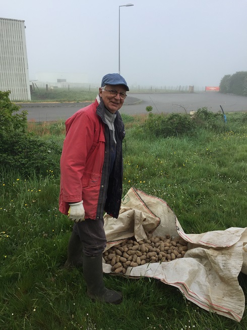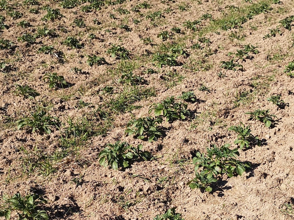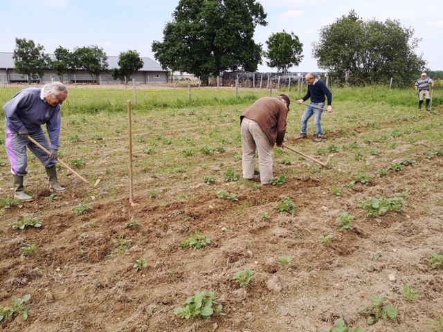 Un nouveau terrain a été mis à notre disposition cette année. Bonne terre, beaux plants de pommes de terre Charlotte, conditions météo favorable avec la pluie, devraient nous apporter une excellente récolte.