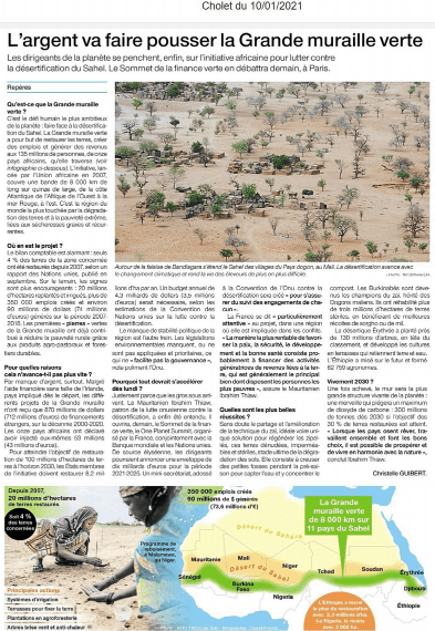 Article Ouest France qui met en avant la culture en ZAÏ, surtout au Burkina et le projet de bande verte africaine Ce dimanche 10 janvier 2021, Ouest France propose un article très intéressant sur le projet de la bande verte sahélienne qui devrait trouver un financement cette semaine avec une conférence menée par la France. Partager sur vos réseaux : Partager sur Facebook(ouvre dans une nouvelle fenêtre) Facebook Similaire Les commentaires sont fermés.