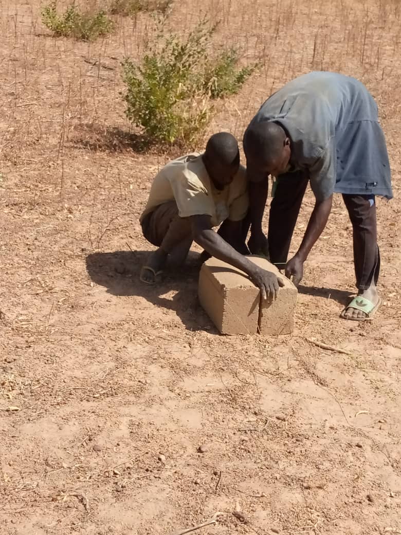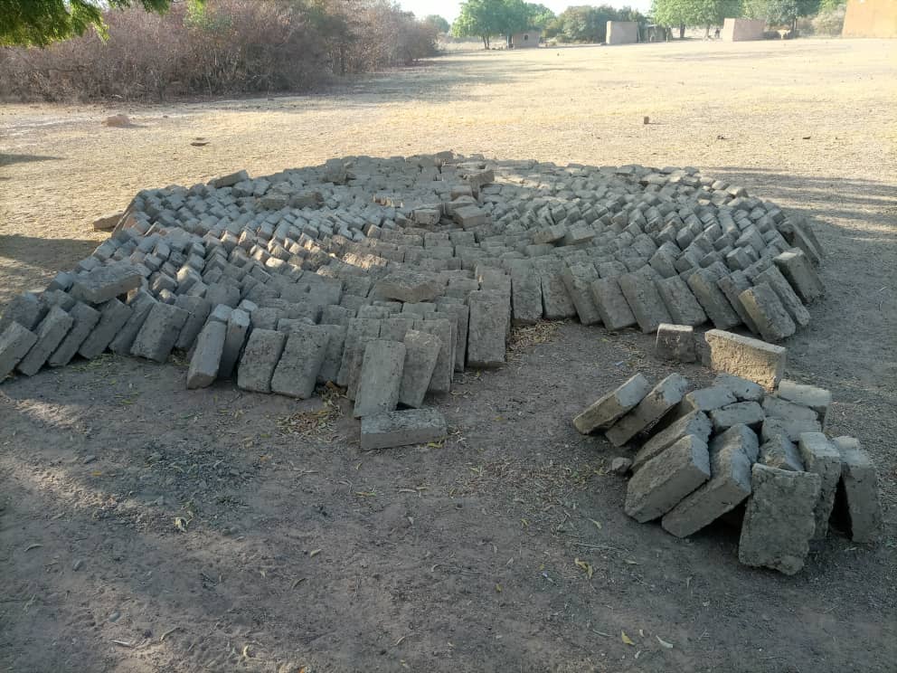 Le logement de l’instituteur est démarré et tout le village s’y met, que ce soit pour fabriquer les briques ou pour monter les mûrs. Tout devrait être terminé rapidement.