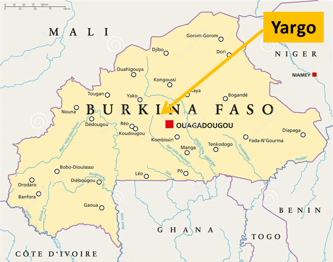 Après 1h30 de piste environ, une concentration de concessions autour de l’école, d’un terrain de foot, greniers à grains et autres petites constructions, se présenteront devant vous. Voici le village de Yargo.